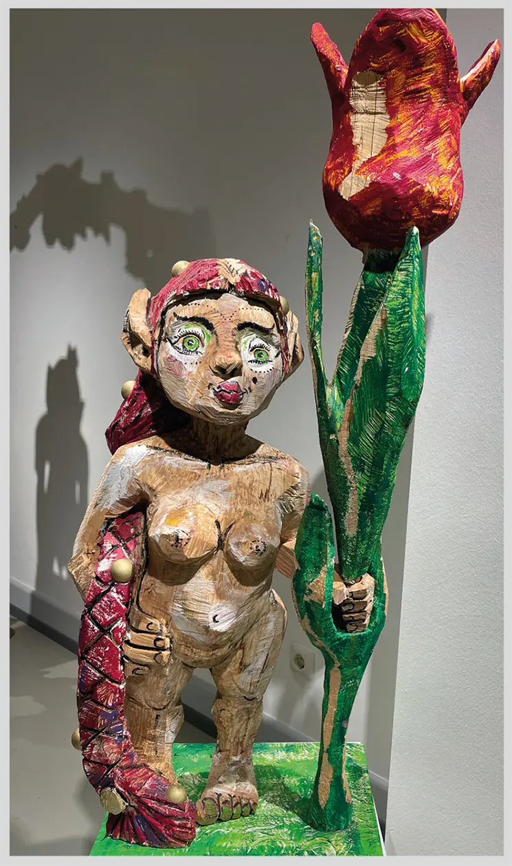Peer Oliver Naus Werke spiegeln die unterschiedlichen Empfindsamkeiten der menschlichen Daseinsformen, immer mit einem Augenzwinkern. Seine Tiere haben meist menschliche Züge und könnten die nächsten Protagonisten eines Zeichentrickfilms sein. Mit seinen „Überziehungen“ gehört er zu den bekanntesten Holzbildhauern Deutschlands.